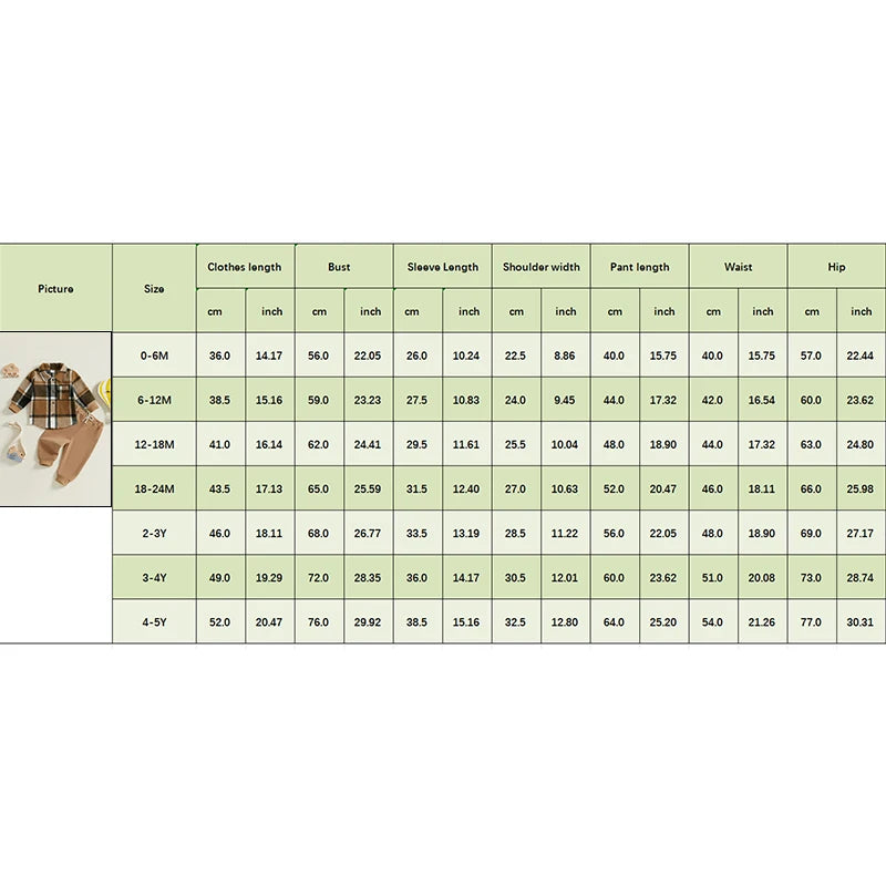 Introducing the perfect outfit for your little ones! This 2 piece set includes a stylish plaid print long-sleeve shirt and comfortable elastic band pants, perfect for the autumn season. Specifically designed for 1-5-year-old boys, it's the ideal outfit for your toddler to look and feel great. Make your child stand out with this trendy and practical outfit. Don't miss out on this must-have for your little boy's wardrobe!