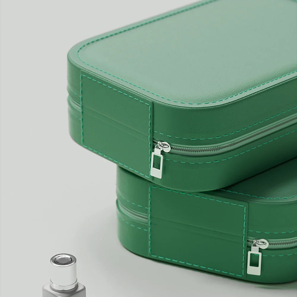 Discover the ultimate solution for organizing your makeup and jewelry while traveling with this Makeup Storage Box! Equipped with LED light mirror and made of durable PU leather, it's the perfect travel companion. With 3 adjustable brightness levels, you can easily achieve the perfect lighting for your beauty routine. Get yours now and elevate your travel experience!