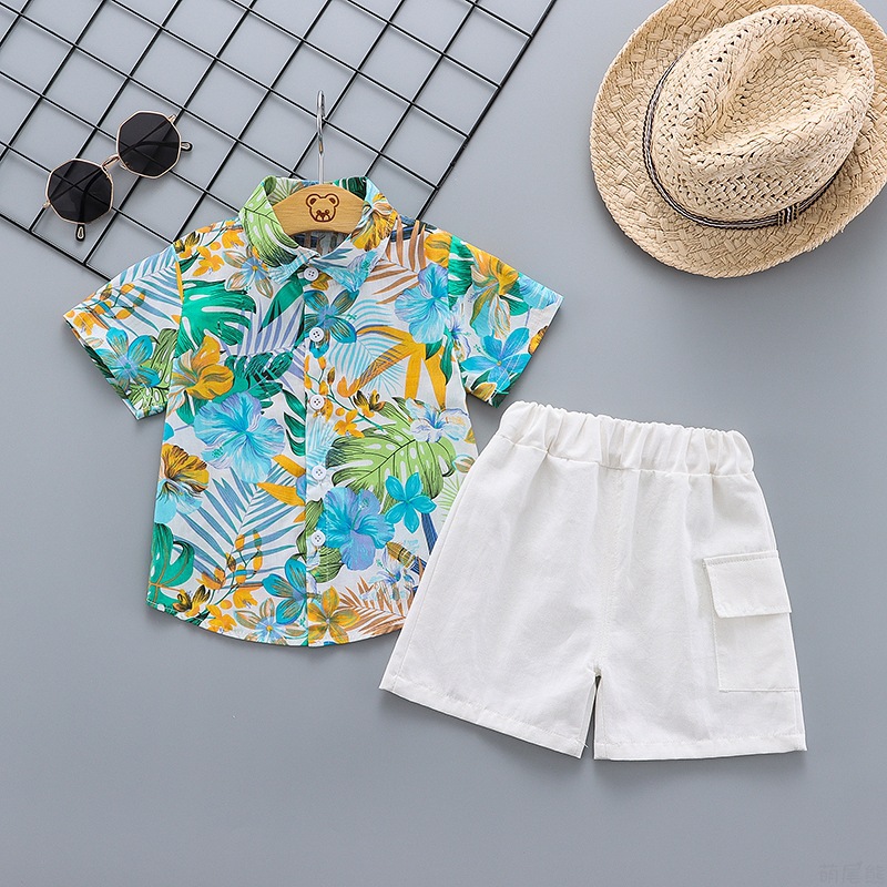 Discover the perfect addition to your child's wardrobe with our Kids Beach Clothes Set! Made from soft and breathable cotton, this set includes a vibrant floral short sleeve shirt and matching shorts. Perfect for the summer season, it will keep your little one cool and comfortable while also adding a touch of Hawaiian style to their look. Don't miss out on this must-have outfit for your toddler or baby boy!