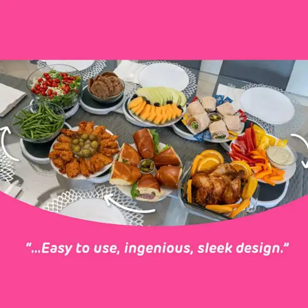 The Lazy Susans Revolution Turntable is a sophisticated and luxurious solution for expanding your desktop storage. With its elegant and exclusive design, this rotating rack is perfect for organizing your kitchen and dining table, making it a tasteful addition to any space. Easily portable, it is the ideal choice for storing your favorite food cups in a stylish and practical manner.