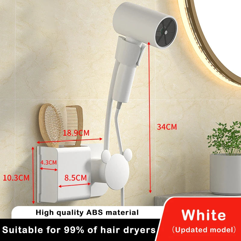 Transform your bathroom into a clutter-free oasis with our Wall Mounted Hair Dryer Holder! No more drilling or mess--simply store your hair dryer and other essentials on our multifunctional shelves. Keep your bathroom looking organized and stylish with this essential bathroom accessory. Enhance your daily routine with the convenience and efficiency of our Hair Dryer Holder!
